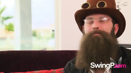 Hot new couples arrive at the red room to fuck mature swingers in a Reality TV Show in America.